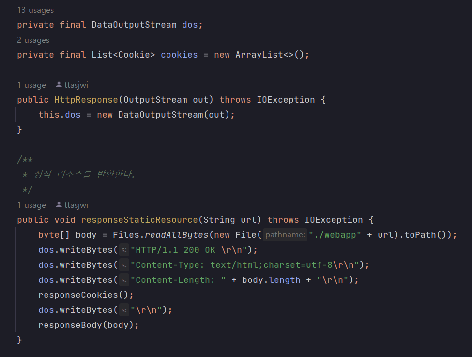 단순히 정적 리소스만 반환하는게 아니라 동적 컨텐츠 리소스를 반환해야하는 경우에는 Body에 담길 데이터도 그 때 그 때 달라질테고... 때로는 쿠키를 통해 특정 데이터를 전달해야할 수도 있고 생각보다 여러가지 케이스를 고려하여 응답 로직을 작성해야합니다.
