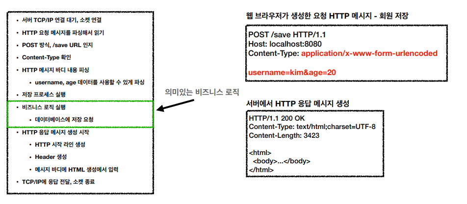 실질적으로 비즈니스 로직 전후의 대부분의 과정을 서블릿 컨테이너가 도맡아 처리해주니 개발자는 Http 스펙을 좀 더 편리하게 이용할 수 있고, 비즈니스 로직에 구현에 집중할 수 있게 되는 것입니다.