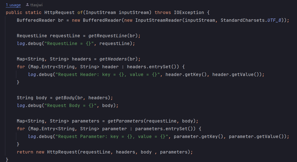 입력 스트림을 통해 전달된 Http 메시지를 파싱해서 분석하고, 그 안에 전달된 파라미터들을 해석해야합니다.