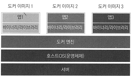 - 운영체제, 각종 의존성 요소(라이브러리, 바이너리 파일,...), 애플리케이션을 묶어서 하나의 '이미지'로 만든다.